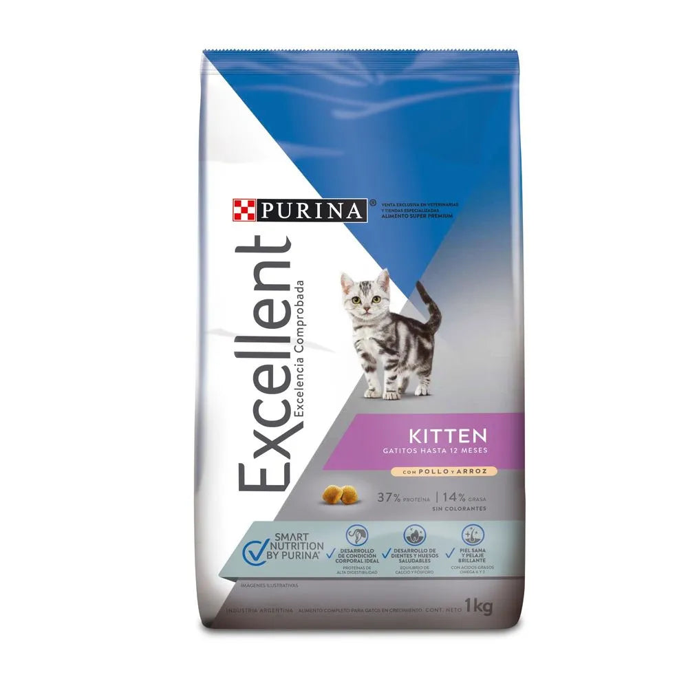 Excellent Kitten es un alimento completo y balanceado, formulado especialmente para cubrir las necesidades nutricionales de gatitos en etapa de crecimiento, desde el destete hasta los 12 meses. Enriquecido con proteínas de alta calidad, DHA para el desarrollo cerebral y visual, y nutrientes esenciales que fortalecen sus defensas, este alimento asegura un crecimiento sano, fuerte y feliz.