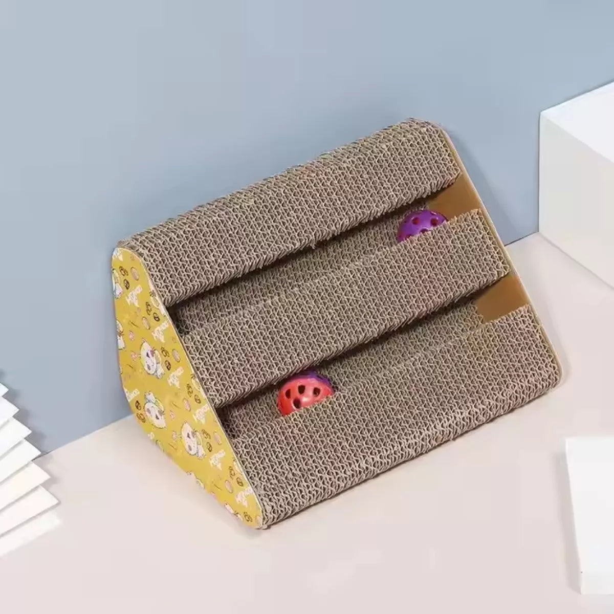 ¡Domina la selva de tu hogar con el Rascador Para Gatos! Con su diseño triangular y color café, tu gato podrá afilar sus garras mientras se divierte con los juguetes incluidos. ¡Dale a tu felino el regalo perfecto para su instinto de caza y asegúrate de que tus muebles se mantengan intactos!